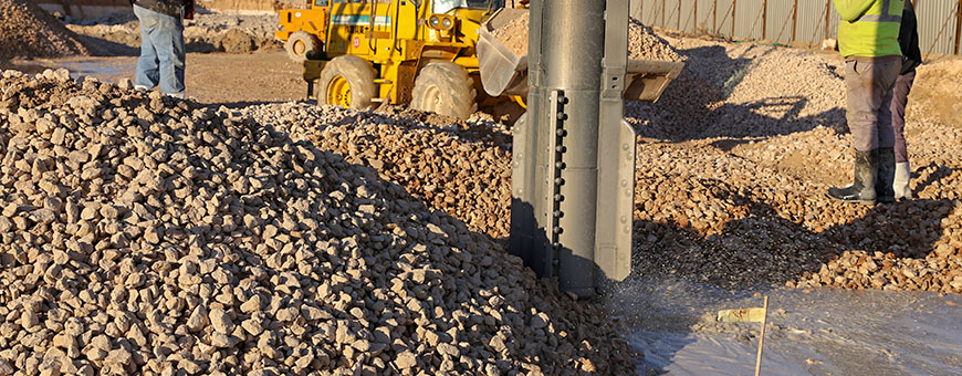 - This is where the hole formed by a purpose-built base machine with a vibrator mounted on the mast of a purpose-built excavator. After removing the vibrator, the hole remains open and the stone infill is added and compacted by the vibrator in stages, assisted by compressed air.
